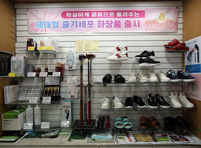 | 설명 | 파크골프화,화장품류,샴푸,단백질 등 전시 모습입니다. |